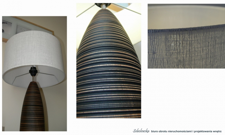 Lampa stojąca: materiał len + drewno