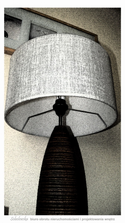 Lampa stojąca: materiał len + drewno