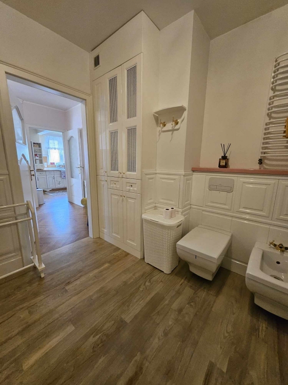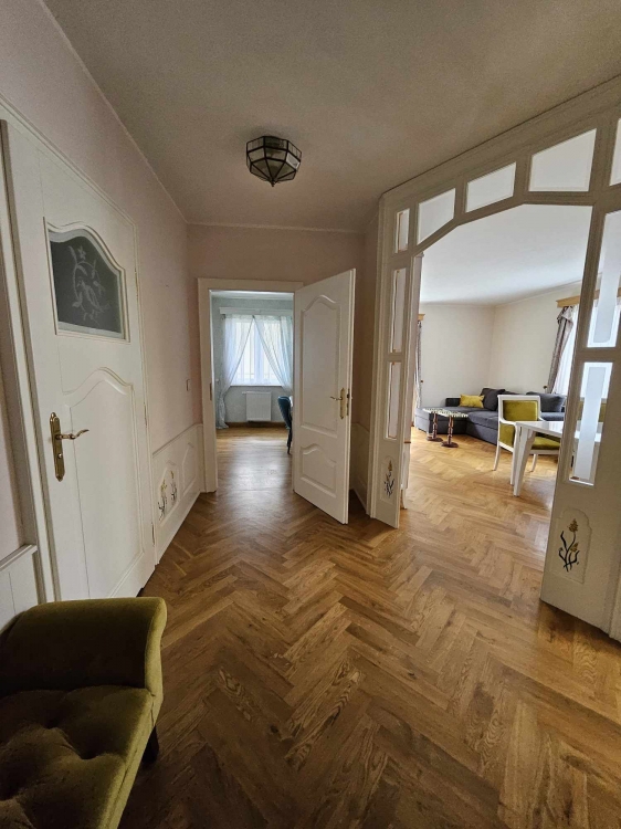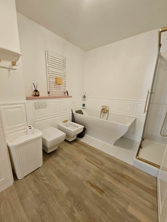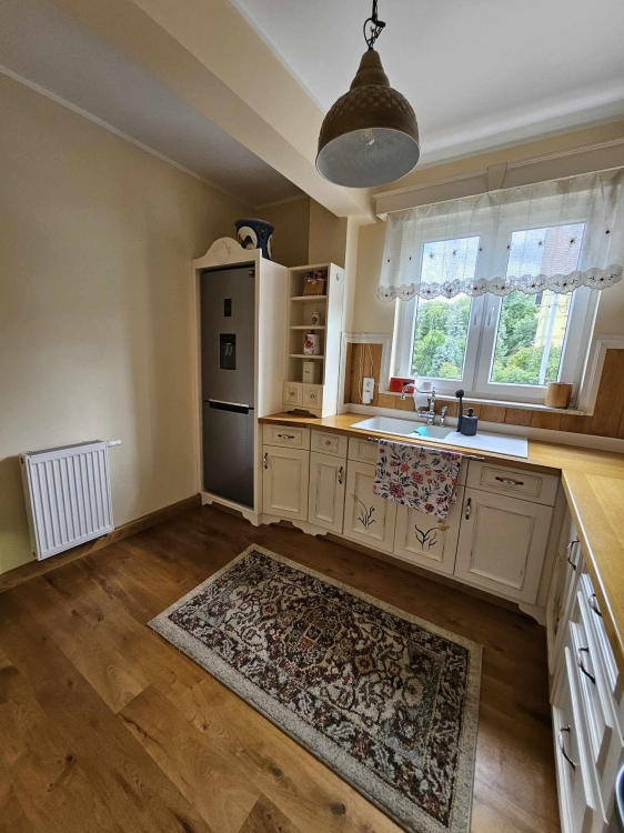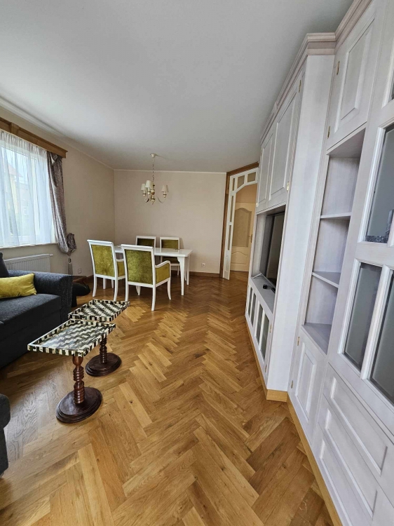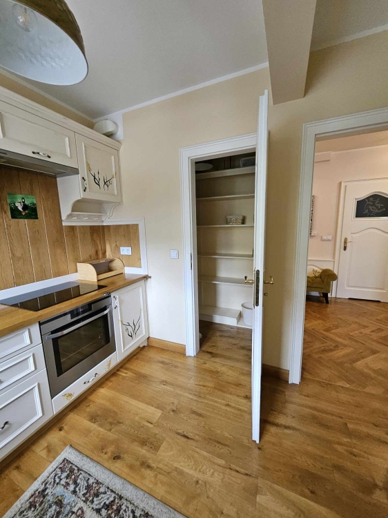 Mieszkanie składa się z salonu z balkonem, osobnej, dużej, wyposażonej kuchni, pokoju, sypialni, obszernej łazienki i dużego wygodnego holu. Mieszkanie jest niepowtarzalne, urządzone ze smakiem przez architekta wnętrz, wszystkie meble z wysokiej jakości materiałów, zrobione na zamówienie.
